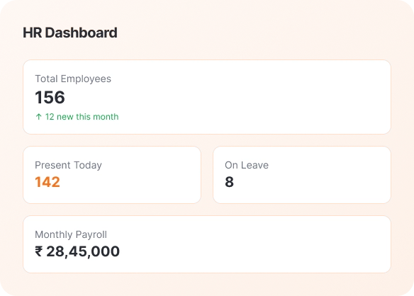 Manage your entire workforce with employee registration, attendance tracking, leave management, and payroll
